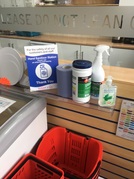 - Sanitiser station for hands & basket handles