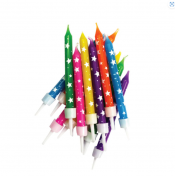 These multi coloured star candles with holders come in a pack of 12 and are 7.5cm tall.