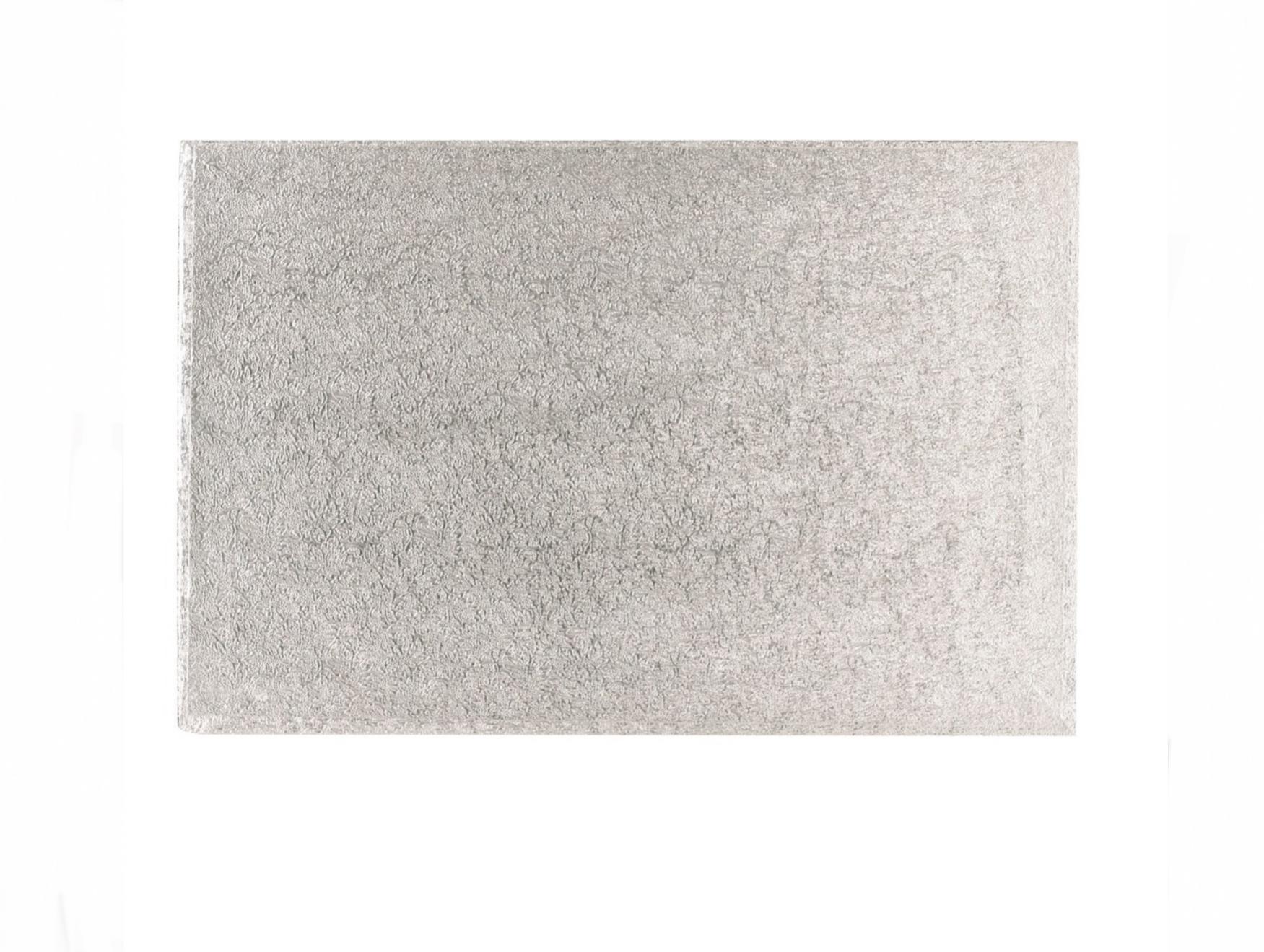 A cake drum is the strongest type of Cake Board. It has a bonded fibre board inner which is covered on the top and sides with a textured, silver coloured foil and with white paper on the base.