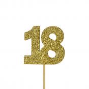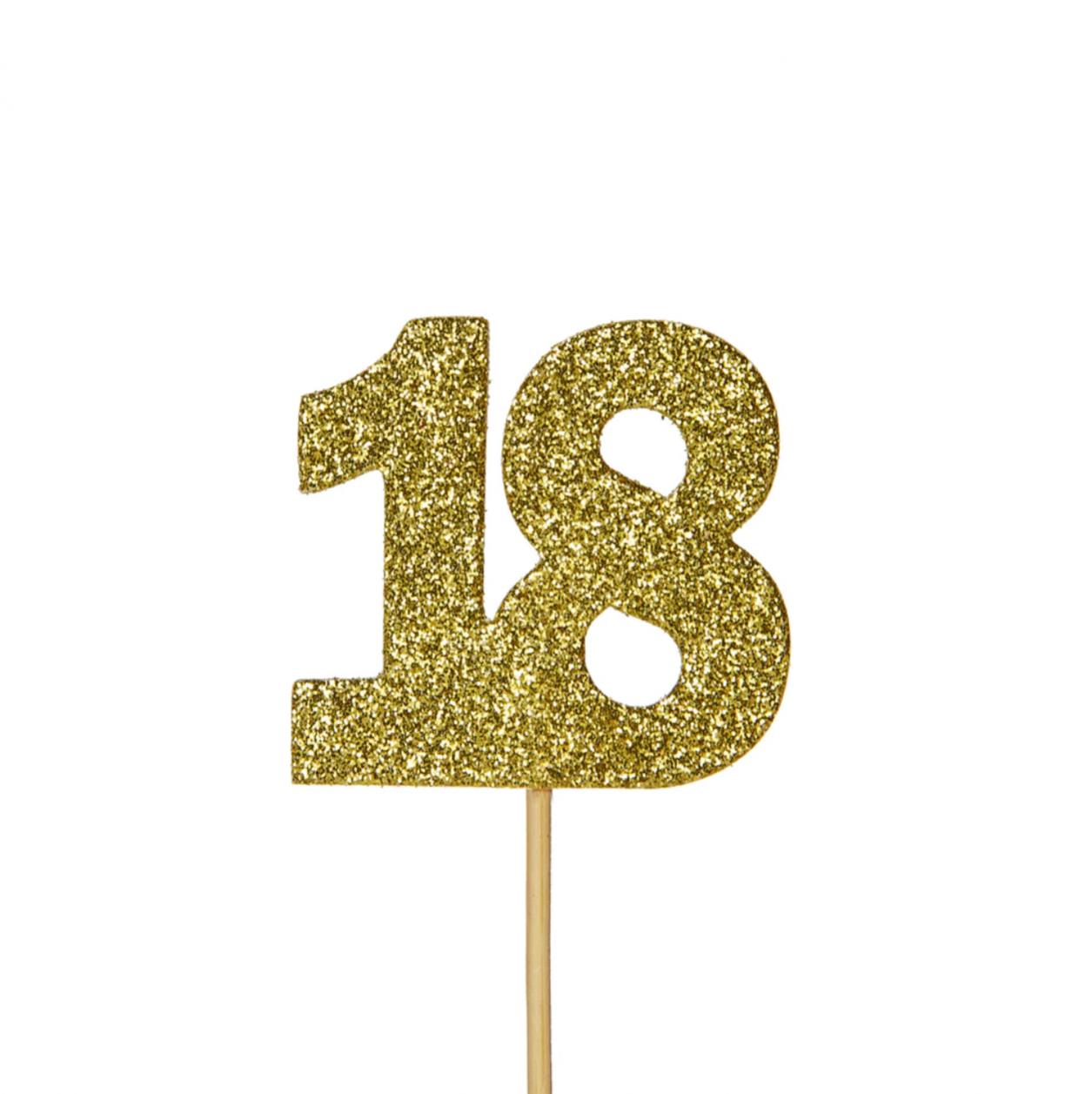 Gold glitter number eighteen - numeral 18, cupcake toppers, each numeral measures 3.8 x 4cm (1.5 x 1.6") and the Pick measures 6.5cm (2.6").