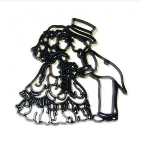 The Bride & Groom Patchwork cutters make for a wonderful wedding cake topper either lying flat on top of the cake or stood up. This Bride & Groom cutter is approximately 9 x 9cm and creates a beautiful thin design.