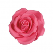 This lovely handmade edible rose in bright pink is made from a soft sugar paste which has a pleasant taste and light vanilla flavour. The realistic looking cake decoration is perfect for adding to a floral display on a wedding or special occasions cake.