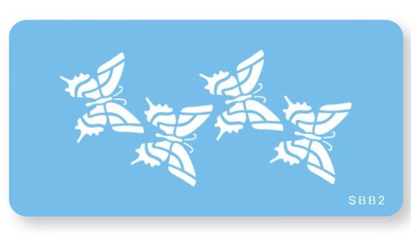 Strong, flexible JEM Butterflies Four Stencil, an extremely effective way to quickly add impressive patterns and decorations to your cakes and cookies. Stencils can be used in various ways, sprayed with lustre sprays, dusted with powder colours, sprayed with an airbrush, with royal icing and even just rolled into paste to emboss the design. Design dimension: 125 x 58 mm (5 x 2 _") Strong, flexible, easy to use and clean. Dimension: 125 x 58 mm (5 x 2 _"). Ideal to use with airbrushing colours, lustre sprays and powder colours. Made from food grade ABS plastic - SBB2