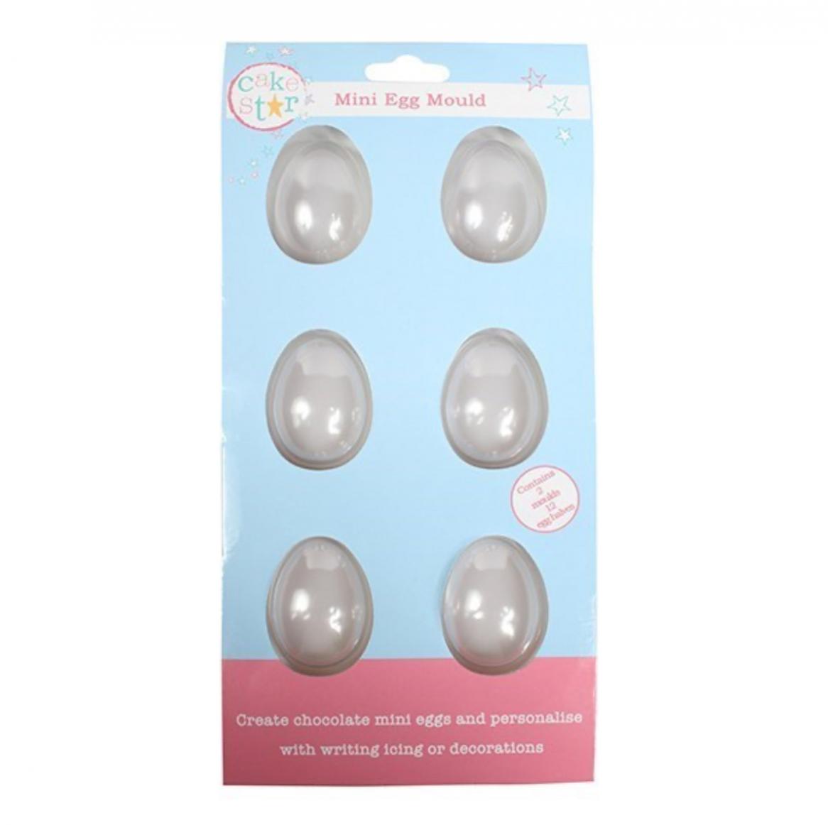 Each set contains 2 x 6 mini egg moulds. To use, spread a thin layer of melted chocolate into the mould using the back of a spoon. Turn upside down and place in fridge on greaseproof paper for 5 minutes. Allow chocolate to set. Repeat until desired thickness is achieved. Once set firmly, the chocolate egg will easily pop out of the mould. To stick both halves together, gently warm the edges of each half until melted and lightly press together. Allow to set.