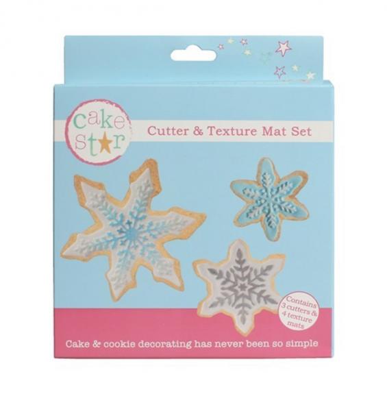 Create beautiful cakes and cookies in an instant with this easy-to-use set by Cake Star. This set contains 3 snowflake shaped cutters and 4 texture mats featuring various designs. Perfect for decorating cakes, cupcakes & cookies!
