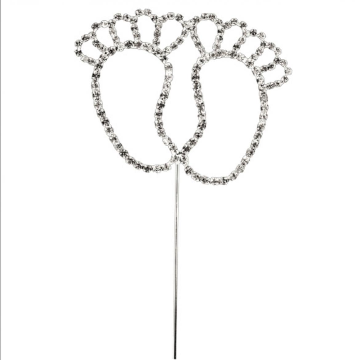 Find out moreA great addition to a baby shower or christening cake this blue diamante clear feet on a silver stem is 7.5 x 5.5cm.