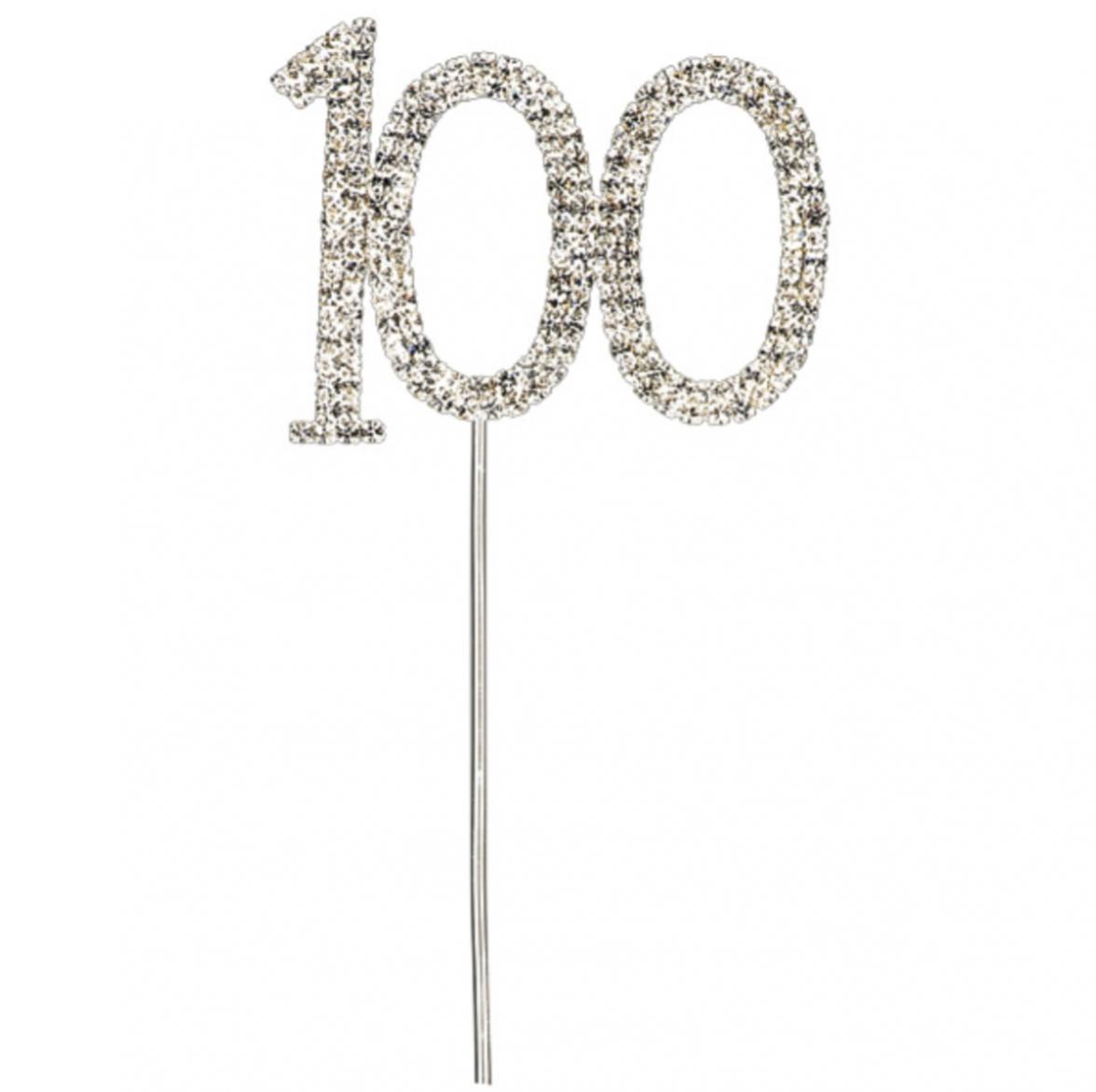 A great addition to a very special landmark century birthday cake, this silver diamante 100 on a stem is 6.5 x 5.5cm.