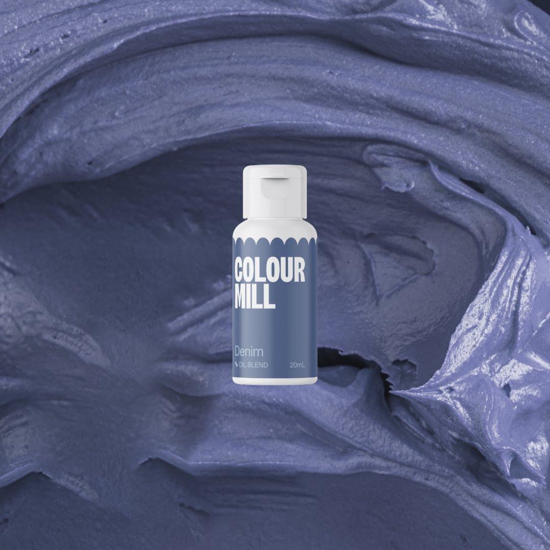 NEW Denim 20ml - Achieve flawless, vibrant, and beautifully bold colour finishes on your cake designs, using the oil-based food colour range, Colour Mill. Unlike your average gel colours, Colour Mill loves the fats and oils found in your baking, and uses it to disperse the special formula colouring.