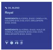 Ingredients: Glycerol (E422), Canola Oil, Colour (E120), Emulsifiers (E322, E433).