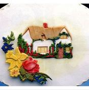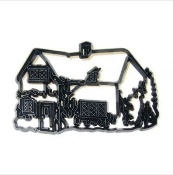 A Pretty Country Cottage Patchwork cutter that produces a sweet little country cottage with leaded windows, thatched roof and surrounded by trees and shrubs. Makes an ideal Christmas snow scene, a holiday cottage, hunting lodge etc adapt for a log cabin, witch's cottage and so on. Approx 9.5cm x 6cm / 95mm x 60mm / 3_" x 2_"