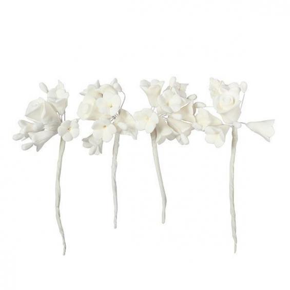 This 4 piece set of White mini rose sprays are perfect for adding to any celebration cake for a beautiful floral finish.