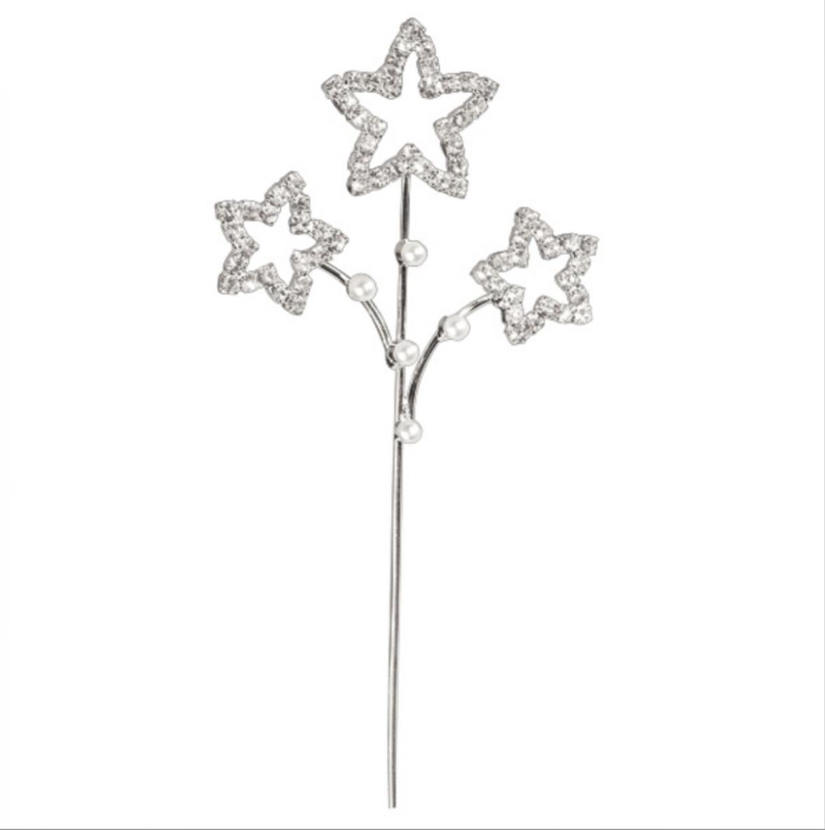 A great addition to a birthday cake this 3 diamante stars spray on a stem is 5.5 x 6cm.