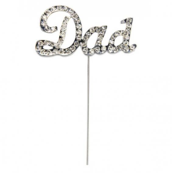 A great addition to a fathers day or birthday cake this diamante dad on a silver stem is 4.5 x 2.2cm.