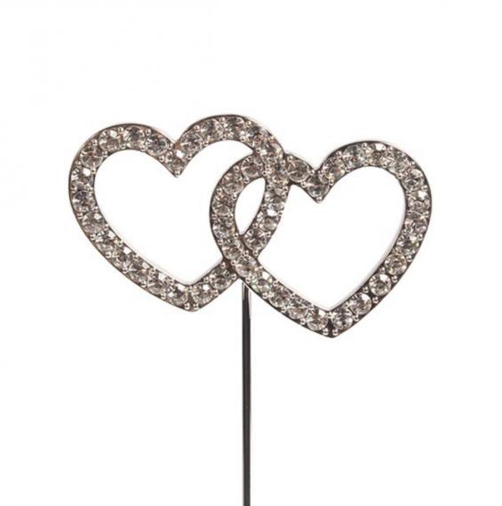 Give wedding cakes a sparkling touch with this pretty diamante double heart design on a silver wire. This decoration is great for celebrating weddings, engagements and anniversaries. Please note this product should not be inserted directly into cakes. We advise you place the wire a suitably sized posy pick before use. Dimensions: 45mm x 69mm
