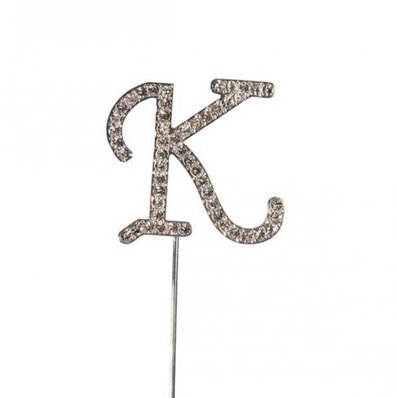 Give your cakes a personal, sparkling touch with this pretty diamante letter K on a silver wire. This decoration is great for spelling out names to celebrate birthdays or special occasions. We stock all alphabet letters and numbers 0-9 in this range. Please note this product should not be inserted directly into cakes. We advise you place the wire a suitably sized posy pick before use. Dimensions: 45mm
