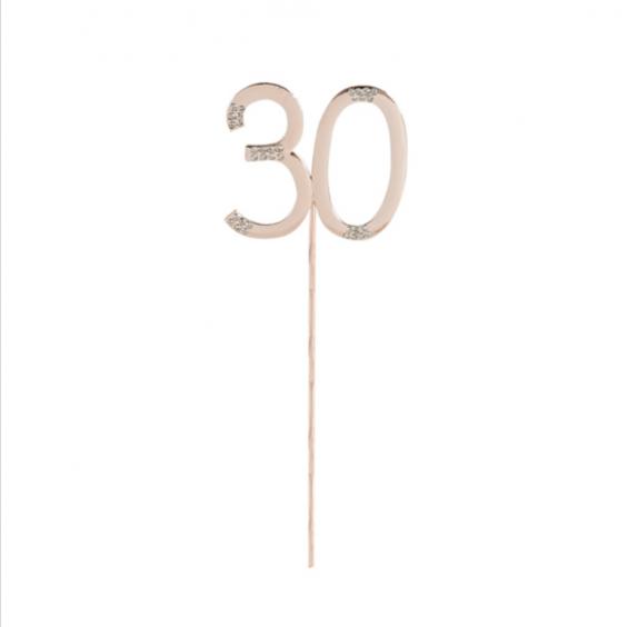 Find out moreA great addition to a birthday cake this new style diamante 30 in rose quartz on a stem is 4.5 x 6cm.