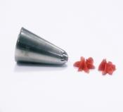 JEM Drop Flower Nozzle no. 129. Ideal for dropping and swirling small flowers.. Dimensions:Tip diameter: 8.2 mm, Base diameter: 18 mm, Height: 31 mm. All nozzles work with parchment piping bags, standard bags and couplers and are made from high quality seamless stainless steel.. Hand wash in warm soapy water is recommended.. No. of Points: 6. All nozzles work with parchment, disposable and fabric piping bags. Dimensions: tip diameter 8.2 mm, base diameter 18 mm, height 31 mm. Made from high quality seamless stainless steel - NZ129