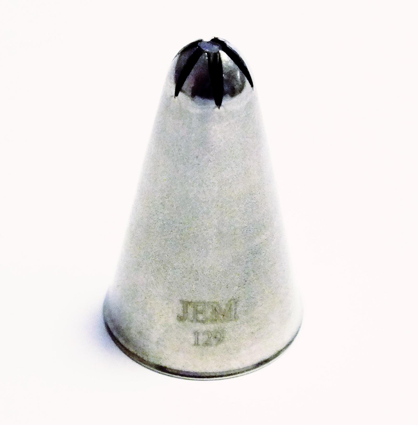 JEM Drop Flower Nozzle no. 129. Ideal for dropping and swirling small flowers.. Dimensions:Tip diameter: 8.2 mm, Base diameter: 18 mm, Height: 31 mm. All nozzles work with parchment piping bags, standard ... Find out more