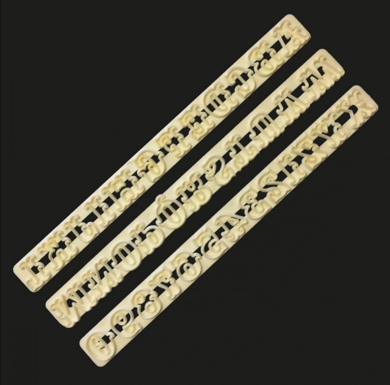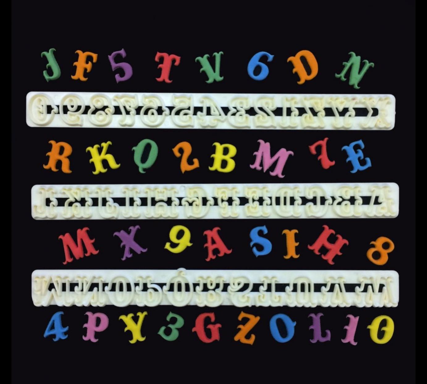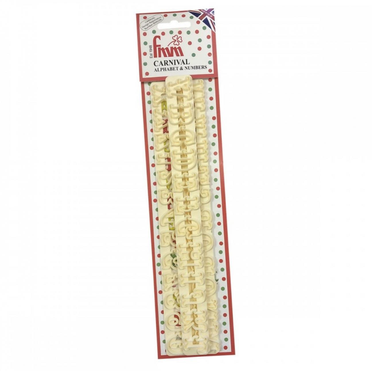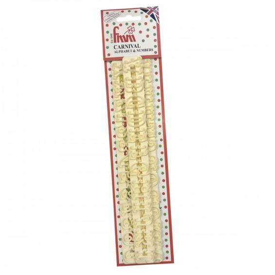 The Carnival Letters & Numbers Cutter Set pack contains three cutters, including letters A-Z and numbers 0-9.