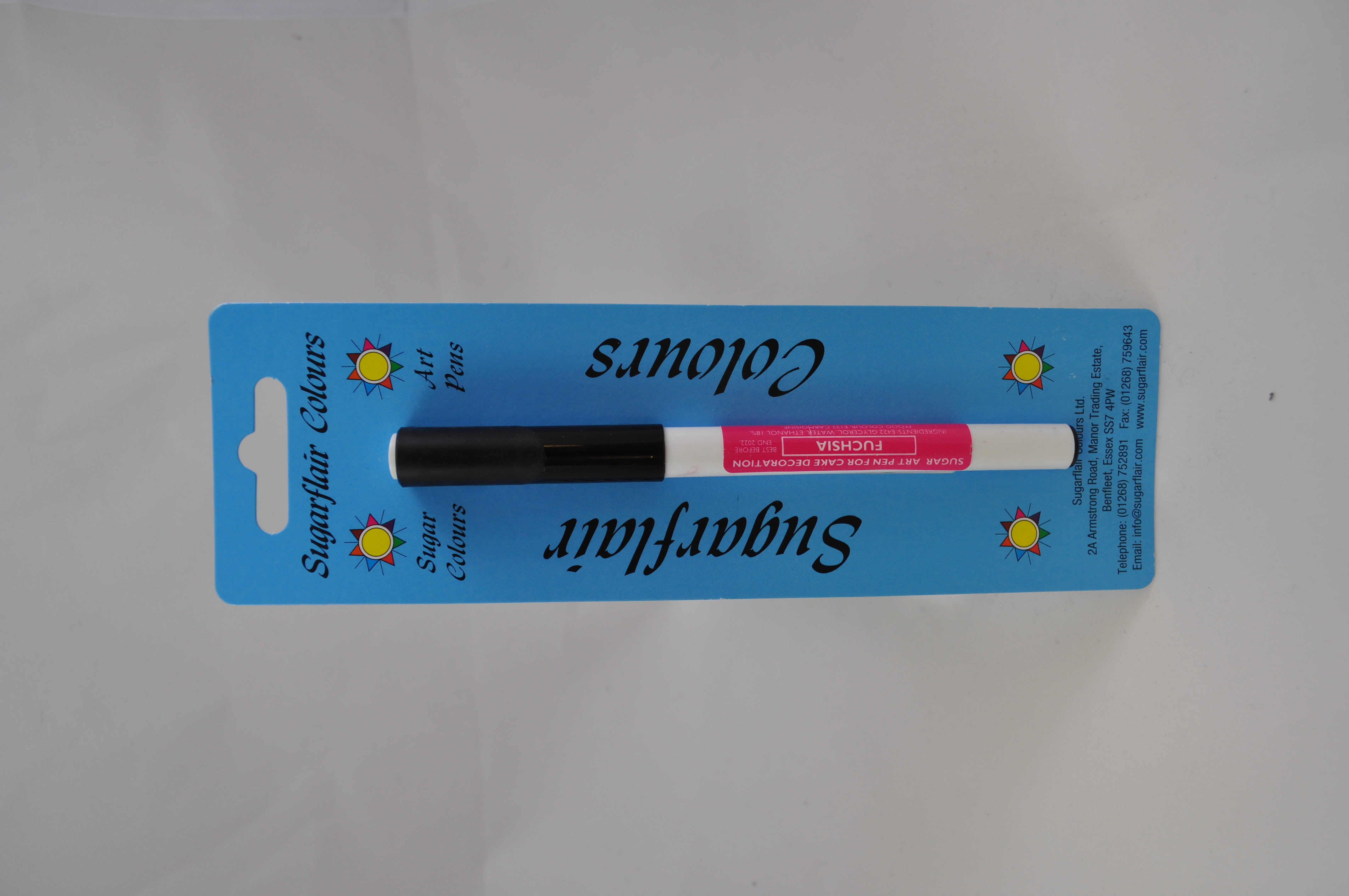 Add personalised designs to your cakes and decorations with Sugarflair's range of edible art pens. This edible pen can be directly applied to sugarpaste, marzipan, royal icing or any other smooth, dry surface for best results. Perfect for writing and drawing your own messages and designs, this pen is easy to use and make great time savers. Please allow your sugarpaste to dry before using this pen, if you use the pen whilst the sugarpaste is still soft the pen will drag through the paste rather than write on top.