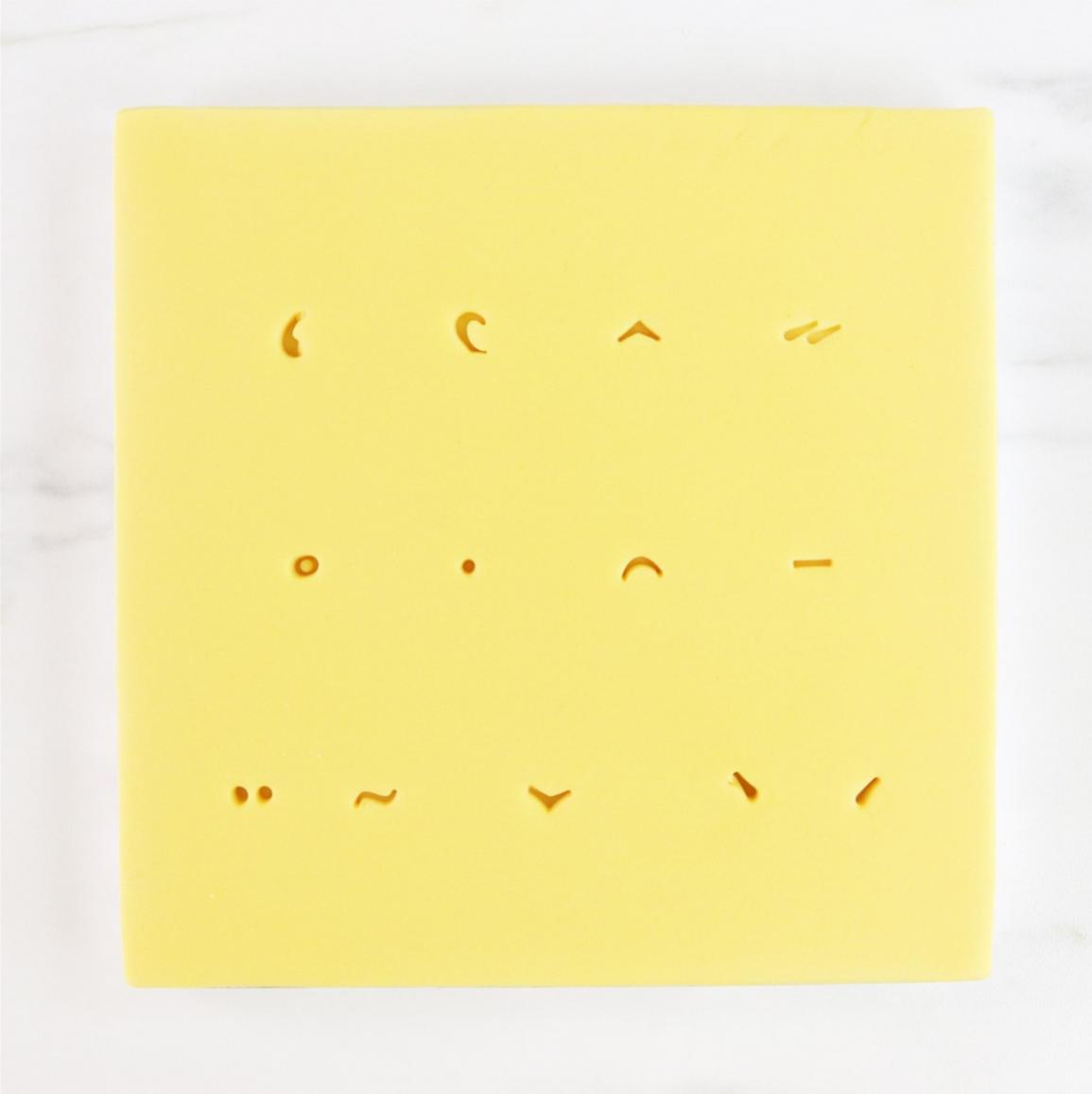 Placing the letters also couldn't be easier with the light see through yellow plastic. The stamp also comes with an easy grip handle and a centre line to ensure a straight line finish on all your creations.