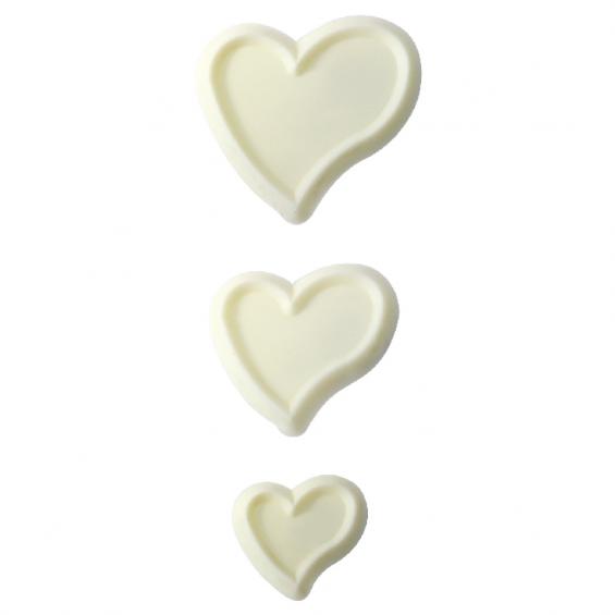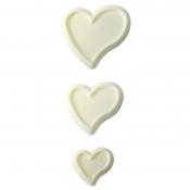 Set of 3 funky heart cutters. Simply pop the cutters in your JEM roller pad, grease the cutters with JEM petal base, pop your paste over the top and roll your rolling pin over the back of the cutter to achieve neat, clean cut outs. Pack includes 3 different sized hearts suitable for any celebration cake or creation! Measurements - small 32mm (1 1/4 inches) medium 40mm (1 1/2 inches) and large 50mm (2 inches). Ideal for use with sugar paste, gum paste or flower modelling paste. Made from high quality ABS Thermoplastic. Cutter Dimensions between 30 and 50 mm (1 _ and 2 in). Handwashing recommended - 112SP012