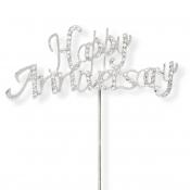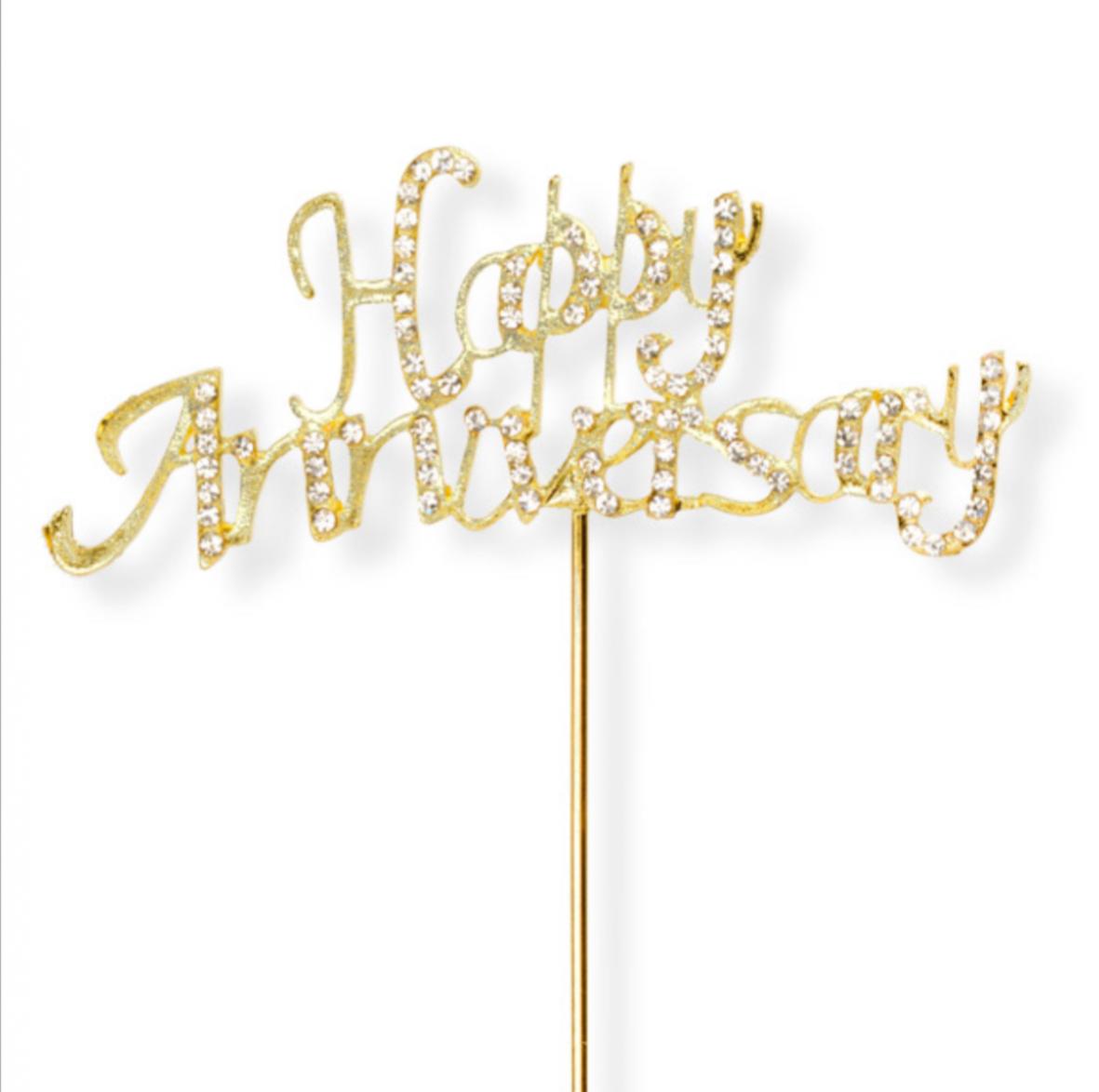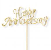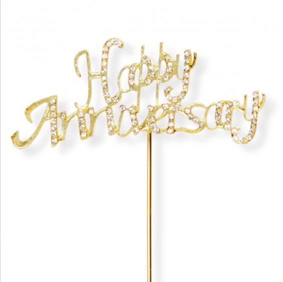 A lovely addition to an anniversary cake this diamante "Happy Anniversary" on a gold stem is 6.5 x 3.5cm.