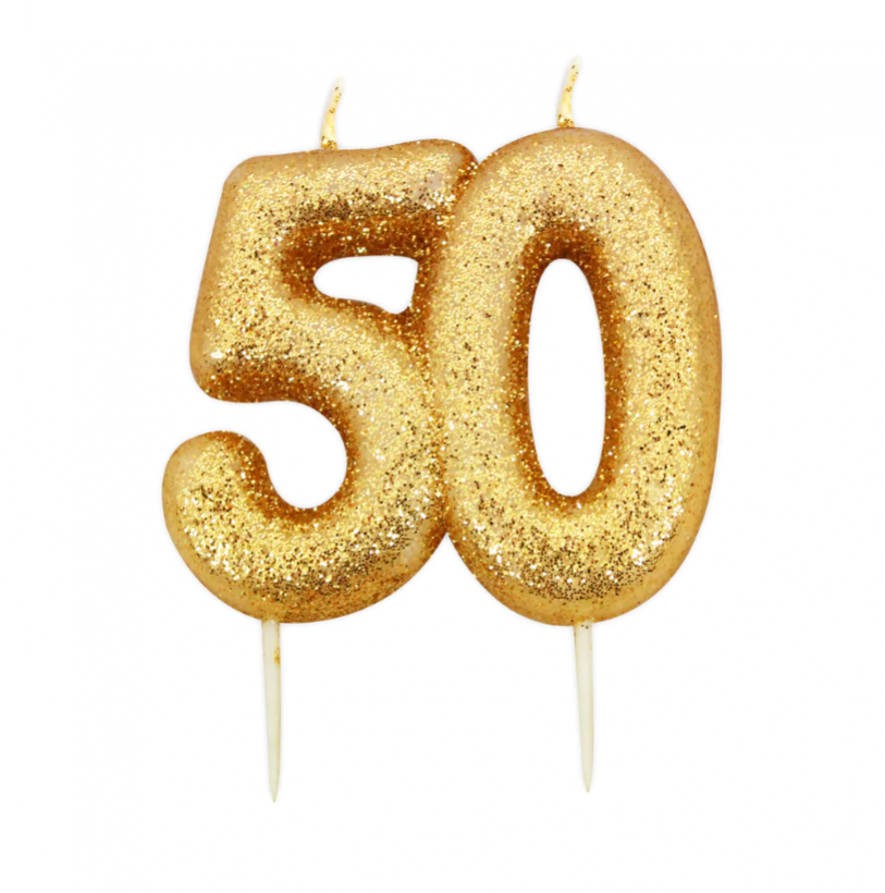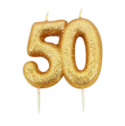 Make a wish on this gorgeous number 50 glitter candle! The contemporary font and gold glitter finish create an eye-catching custom cake topper.