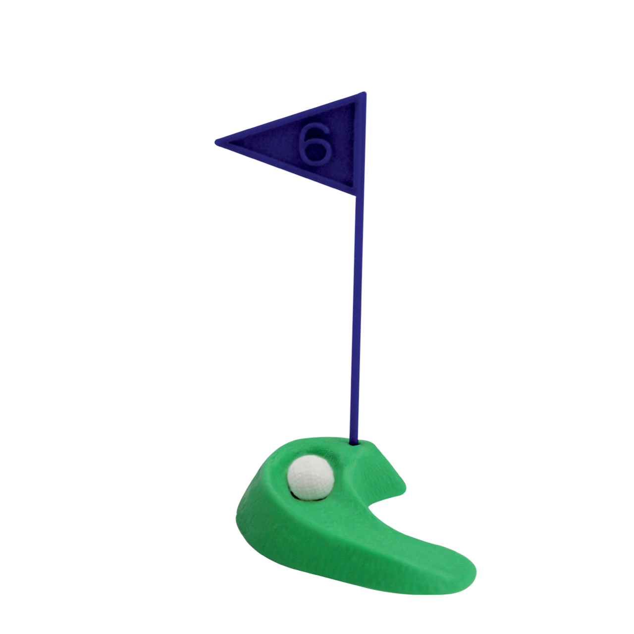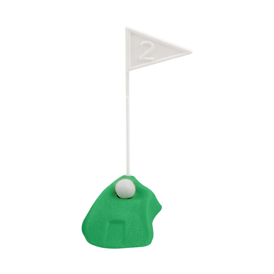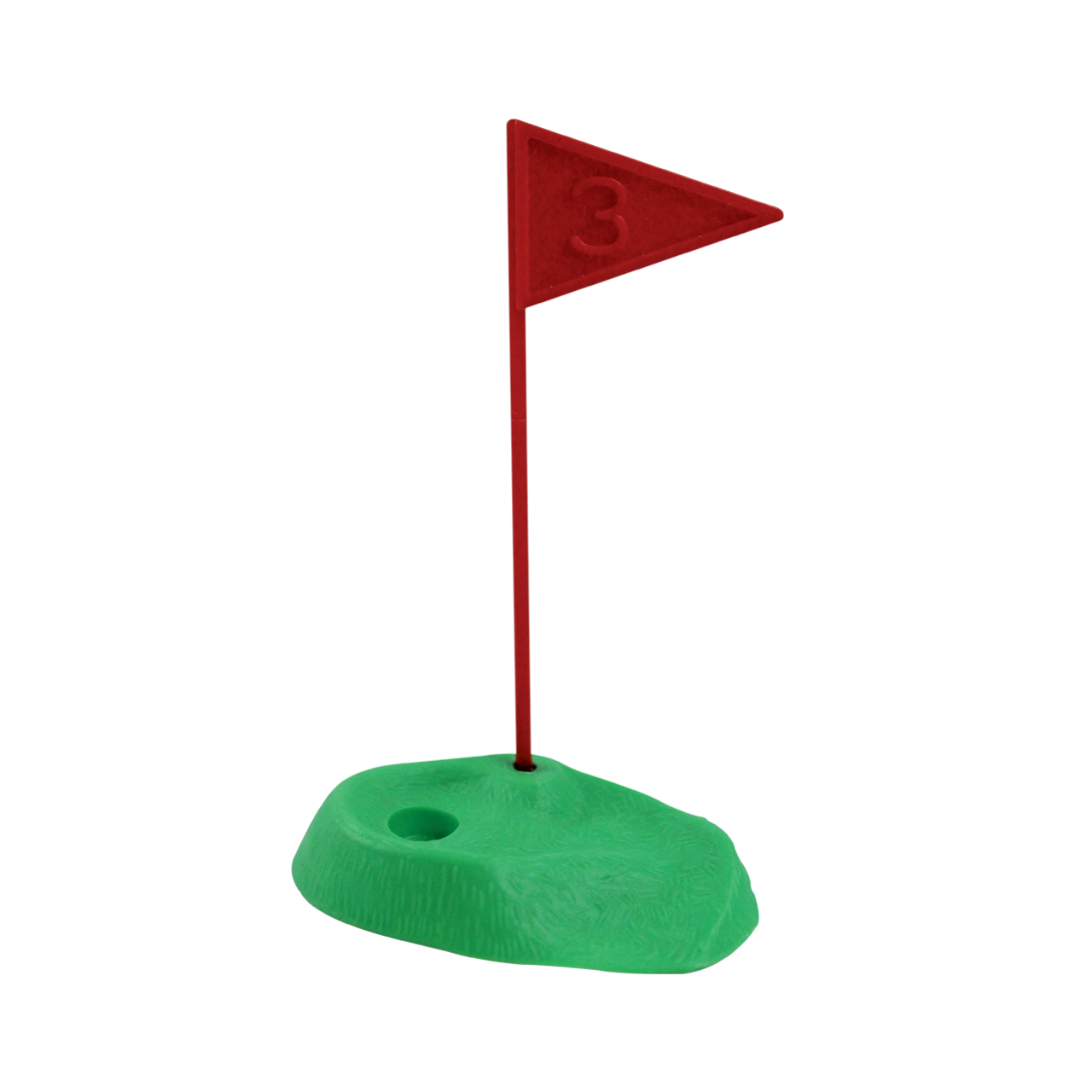 The set contains 13 pieces, which include, 1 golfer, 3 holes + 3 flags + 3 golf balls and 3 golf clubs.