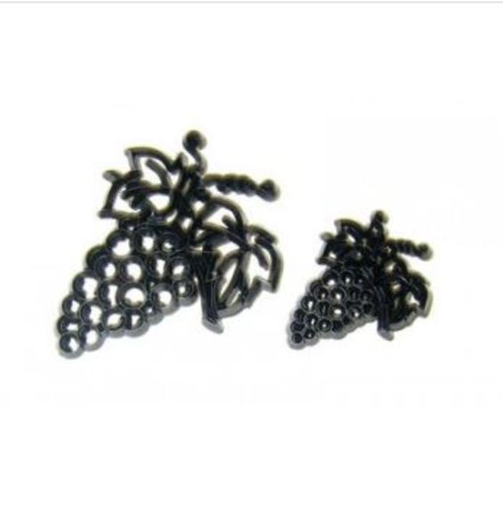 A 2 piece Grape & Vines cutter set by Patchwork Cutters. These cutters are perfect for wine lovers with a bunch of grapes and vine leaves. -The set comes in two sizes and makes a very pretty side design. The large grapes work well with the 'Bottle & Glass' cutters The small cutter is 5 x 4cm and the large is 8 x 6cm.