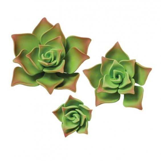 Pack of 3 green gum paste succulents, perfect for decorating special wedding cakes.