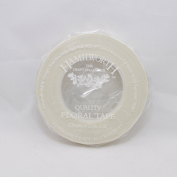 This white 0.5 inch florist tape is the perfect way to tape your wired flowers together or when making explosions.