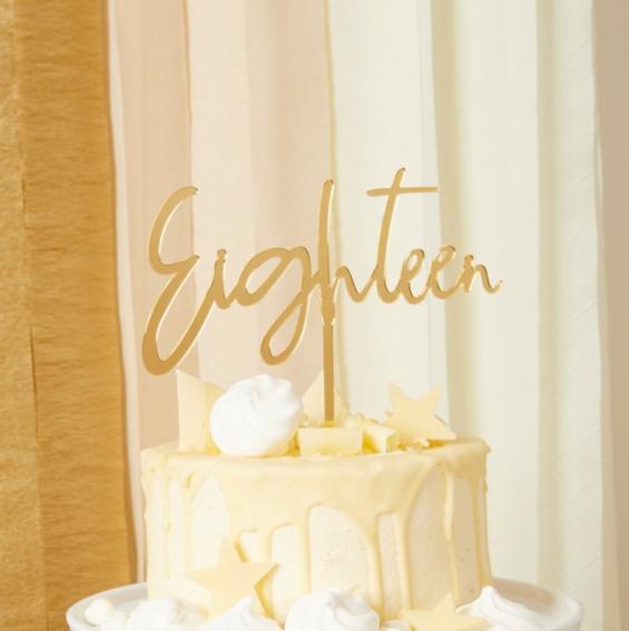 You're special day deserves a special cake to match, this beautiful gold 'Eighteen' Cake Topper will take your cake to the next level!