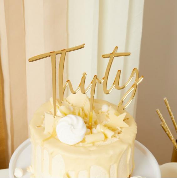 You're special day deserves a special cake to match, this beautiful gold 'Thirty' Cake Topper will take your cake to the next level!