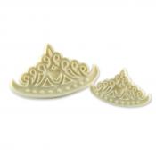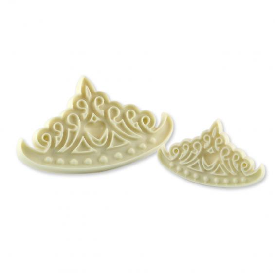 The JEM Princess Tiara 'Pop It' set of 2 Mould allows you quickly create tiara toppers to decorate your cakes - perfect for children's birthday cakes, cupcakes and more. This range of JEM cutters not only comes in a vast range of sizes and designs, they are also some of the easiest moulds and cutters to use. The range comes with a small circular �handle� on the back of the cutter that allows you to push down into your sugar paste or modelling paste to create the desired design however, this �handle� can also be used to push into the roller pad or Pop It Pad with the mould design facing upwards. This allows you to spread the desired amount of fondant over the mould design and then use a rolling pin to roll over the mould, levelling the fondant and cutting it off at the sides giving you a perfect cut out, each and every time!