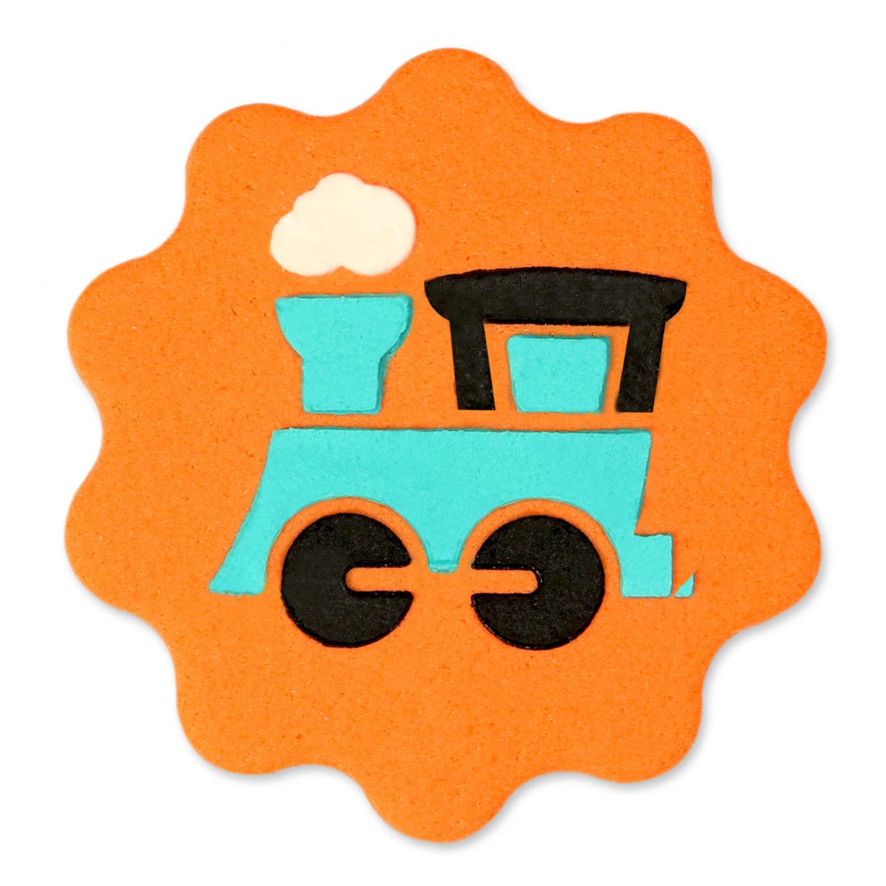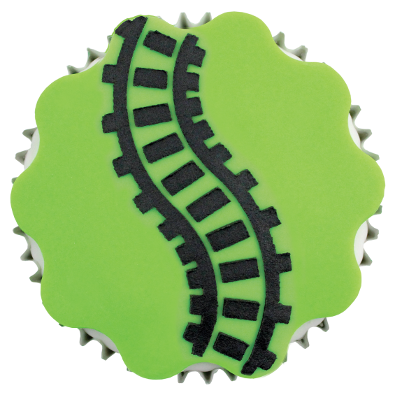 Strong, flexible JEM Train Stencil set, an extremely effective way to quickly add impressive patterns and decorations to your cupcakes and cookies.