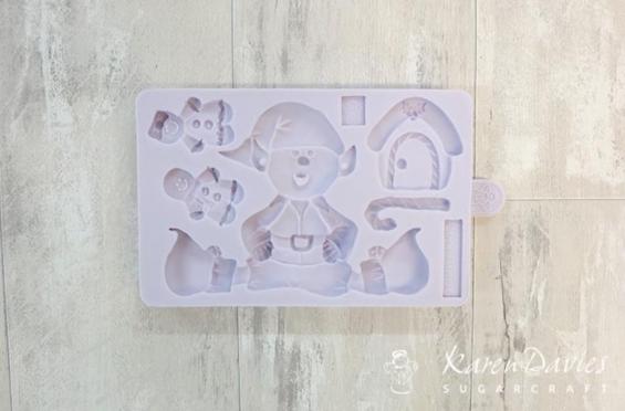 This fun festive Karen Davies Sitting Elf Mould is approx 140x90x18mm.