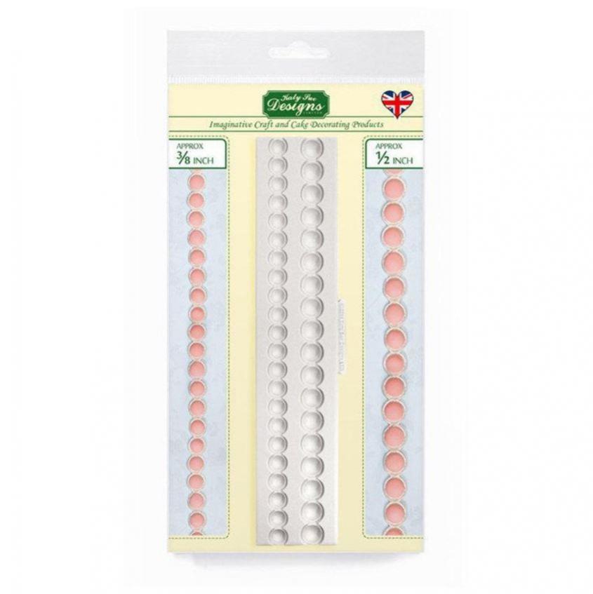 Food Safe Mould containing a set of two low rise pearl strings in two different sizes. The pearls can be removed as a string or used individually. Because of their shallow depth the pearls are perfect for adding a wide variety of design detail and will co-ordinate with the other pearl borders in the Katy Sue range.