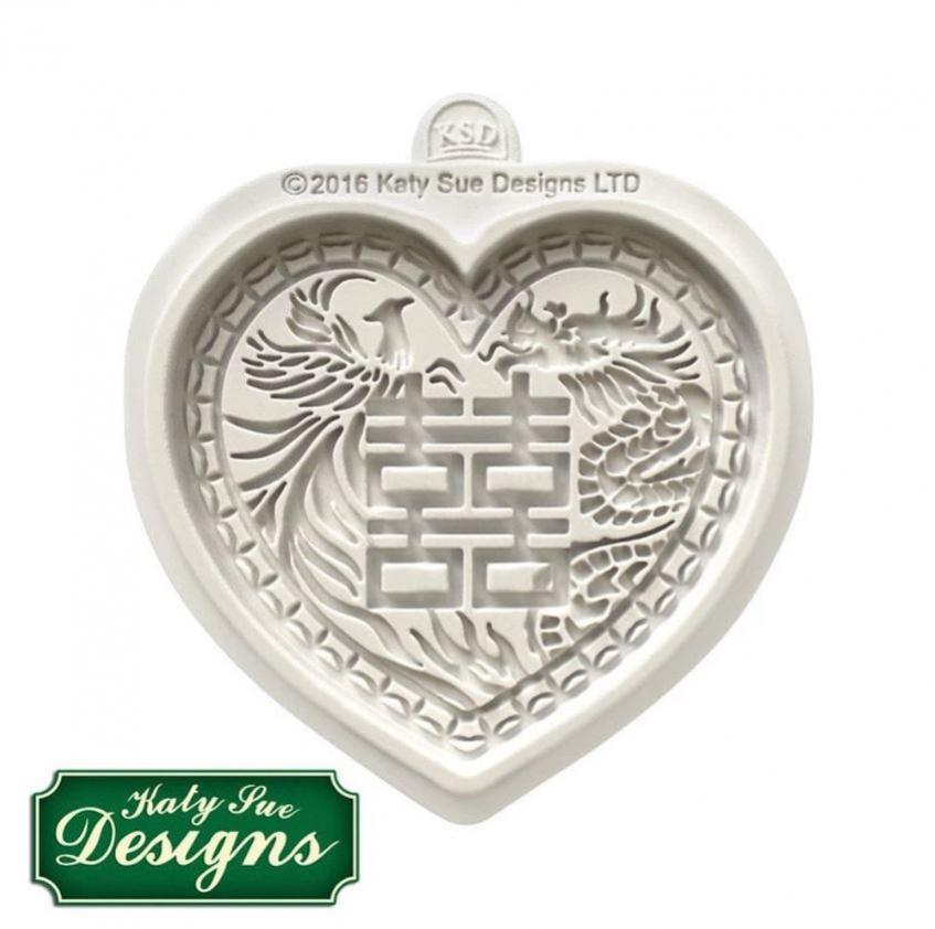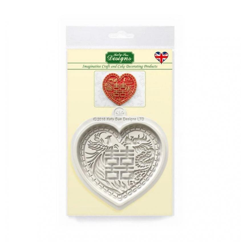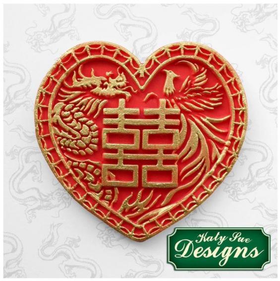 Chinese double happiness heart shape mould. Design includes Chinese dragon and pheonix, perfect for Chinese New Year, weddings, or good luck celebrations!