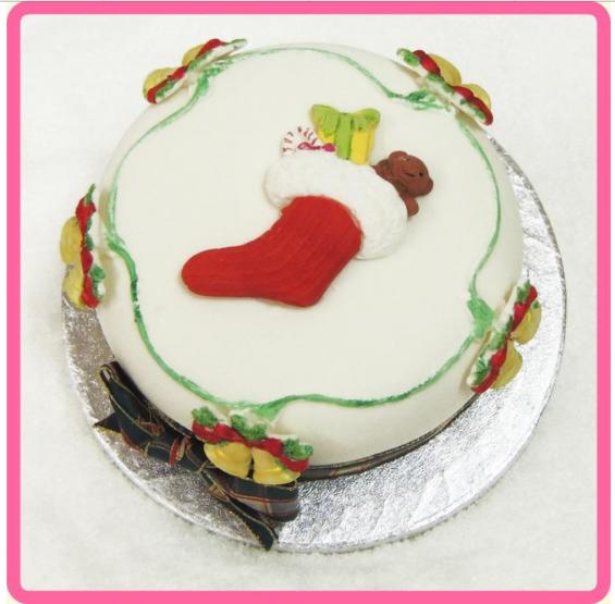 This detailed Christmas stocking filled with toys will add a touch of magic to your Christmas biscuits and cupcakes this year.