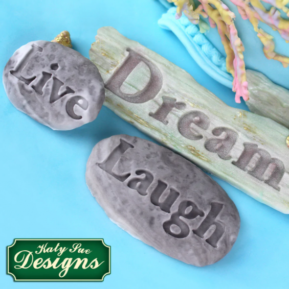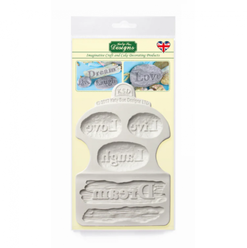 Katy Sue have created a set of moulds to create driftwood and word stones to go with their seaside scene.