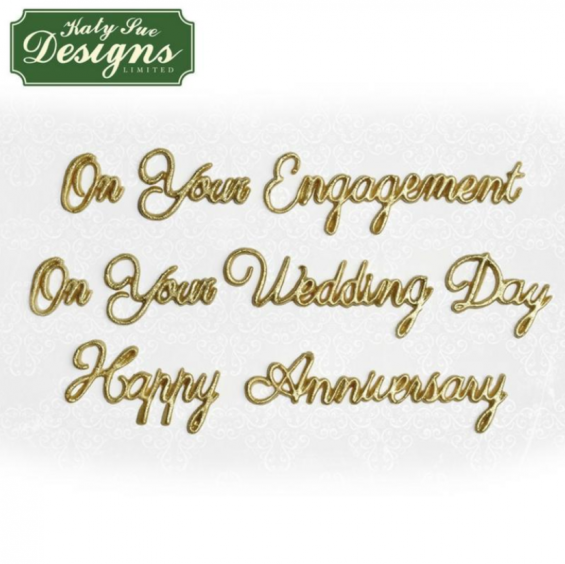 This mould has 3 sentences, 'Happy Anniversary' - 123mm x 26mm, 'On Your Wedding Day' - 164mm x 26mm & 'On Your Engagement' - 145mm x 26mm.