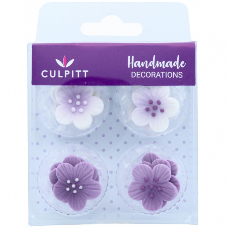 Each pack includes lilac and white flowers in 4 varying designs. Ideal for cupcakes, cakes and cookies, these sugar decorations are completely edible and very easy to use.