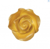 This lovely handmade edible rose in lustre gold is made from a soft sugar paste which has a pleasant taste and light vanilla flavour. The realistic looking cake decoration is perfect for adding to a floral display on a wedding or special occasions cake.