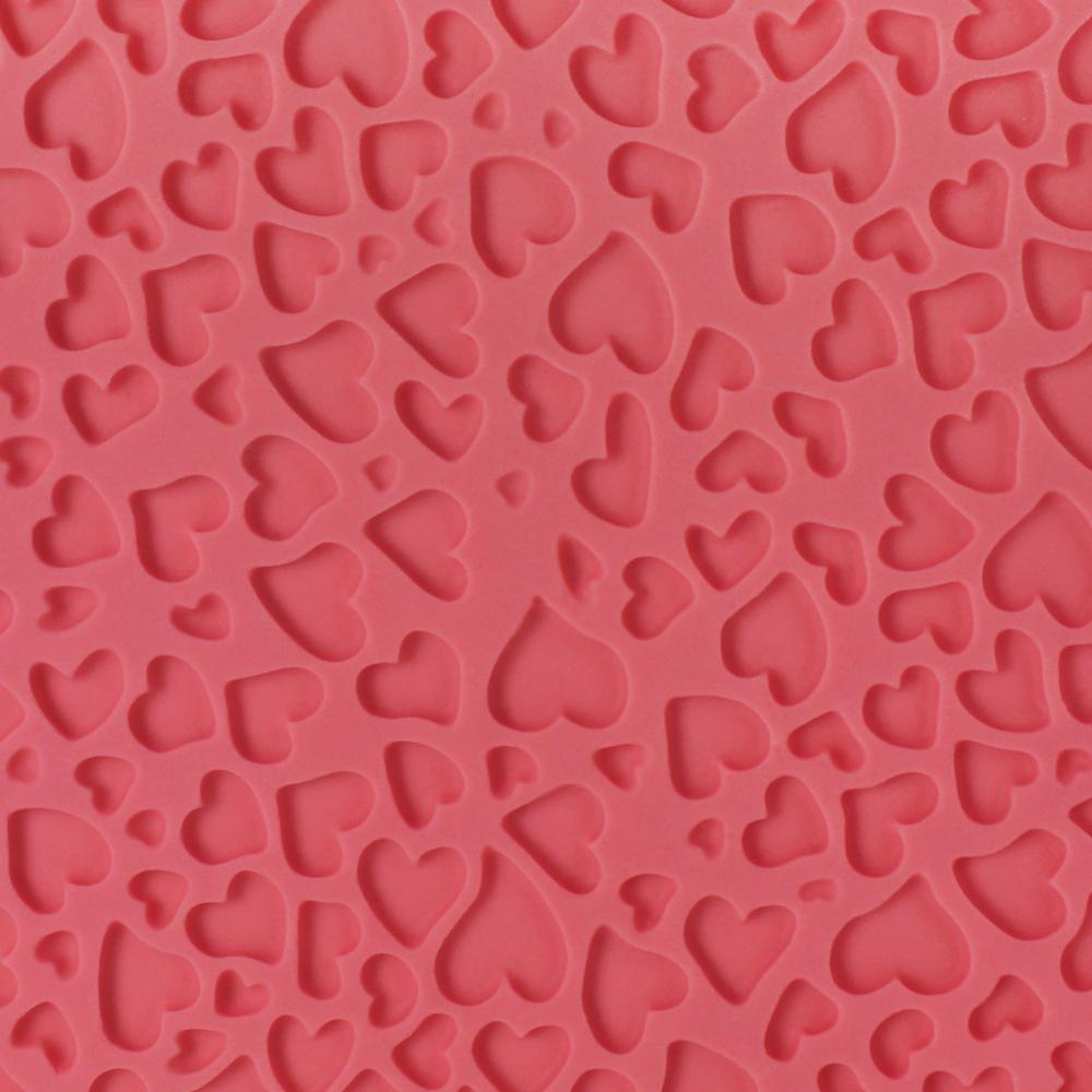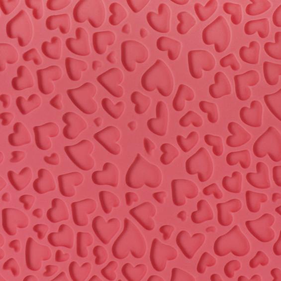 This mini heart design impress mat is a perfect way to create texture & to print a design. Simply roll out your fondant onto the impression mat smoothing it down & the design will print itself on the reversed side. This mat is approximately 150 x 305mm. - IM195