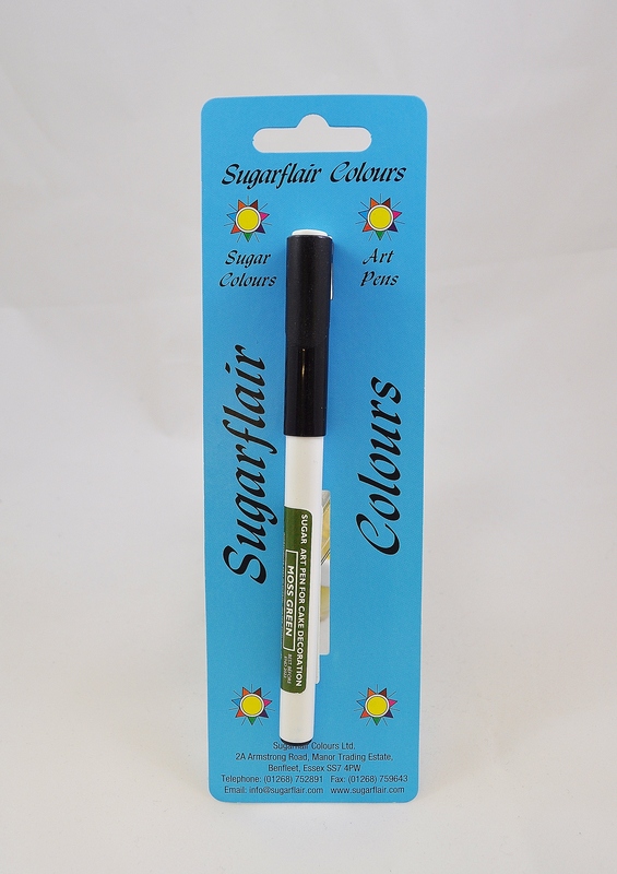 Add personalised designs to your cakes and decorations with Sugarflair's range of edible art pens. This edible pen can be directly applied to sugarpaste, marzipan, royal icing or any other smooth, dry surface for best results. Perfect for writing and drawing your own messages and designs, this pen is easy to use and make great time savers. Please allow your sugarpaste to dry before using this pen, if you use the pen whilst the sugarpaste is still soft the pen will drag through the paste rather than write on top.