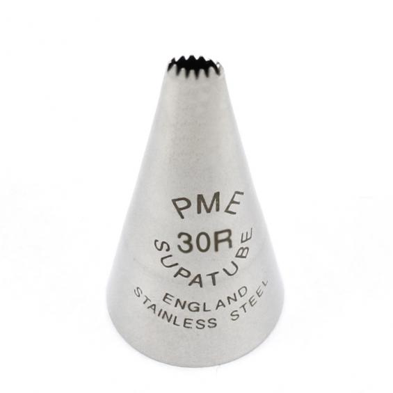 This ribbed ribbon tube is a perfect way to achieve those lovely finishing edges to the bottom of your cakes. Use in a piping bag with icing, royal ice or melted chocolate. This supatube is made from high quality stainless steel & is dishwasher safe. - ST30R