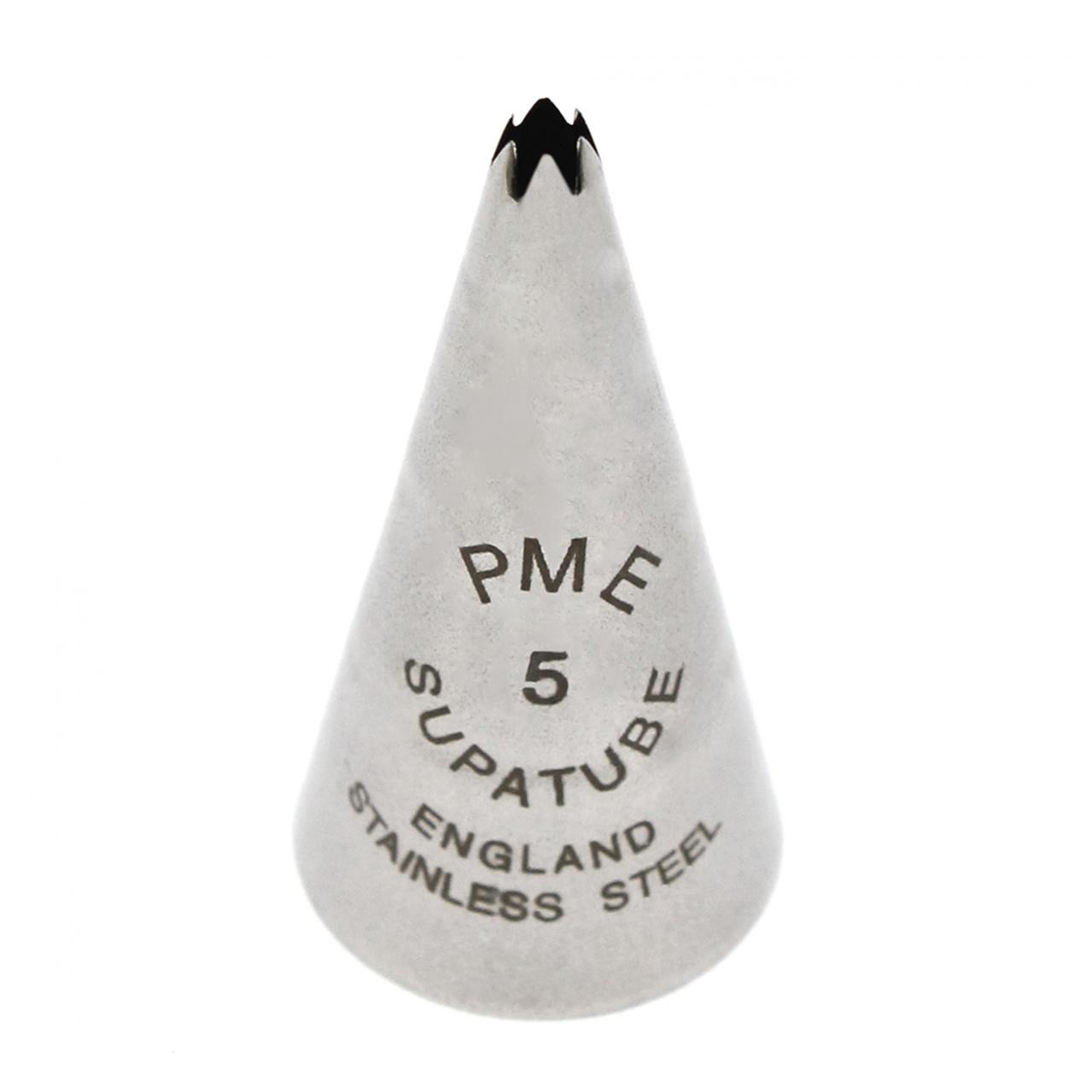 This No. 5 star tube is a perfect way to achieve those lovely star designs or edges to the bottom of your cakes. Use in a piping bag with icing, royal ice or melted chocolate. This supatube is made from high quality stainless steel & is dishwasher safe. - ST5