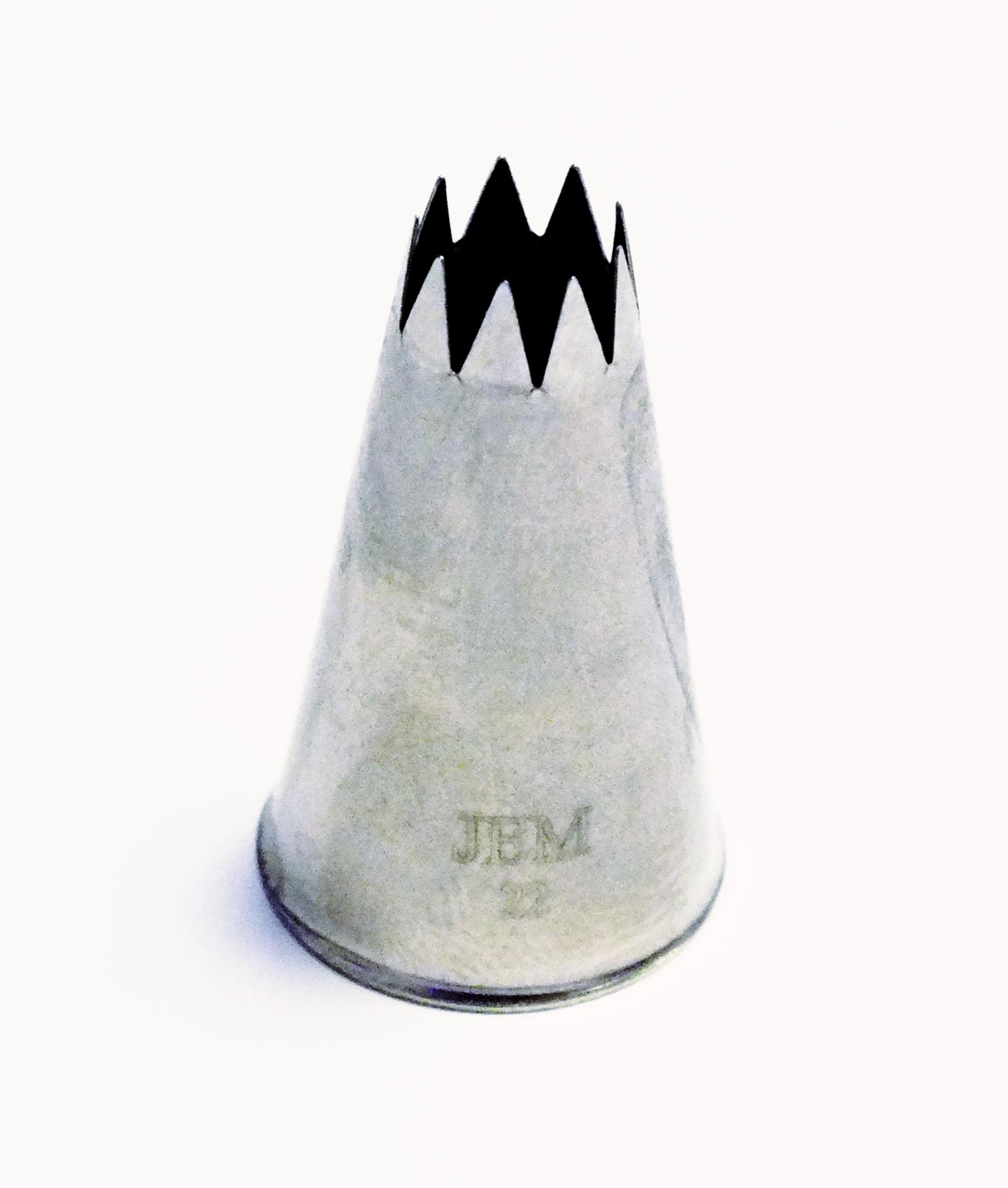 JEM Open Star Piping Nozzle no. 22 Ideal for star techniques, drop flowers, shells, rosettes and decorations with many ridges. Dimensions: Tip diameter: 9 mm Base diameter: 18 mm Height: 31 mm No. of ... Find out more