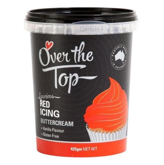 This red buttercream has a delicious vanilla flavour and is perfect for filling your cake layers, piping onto cupcakes, and comes in a convenient ready-to-use container.